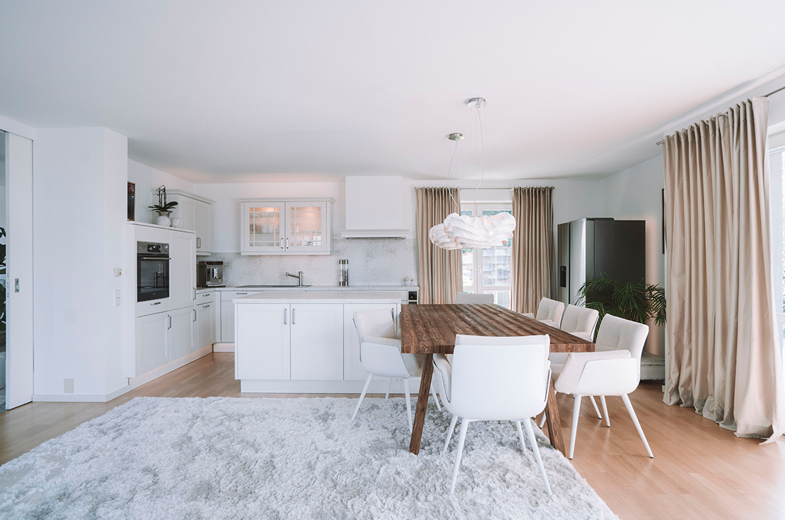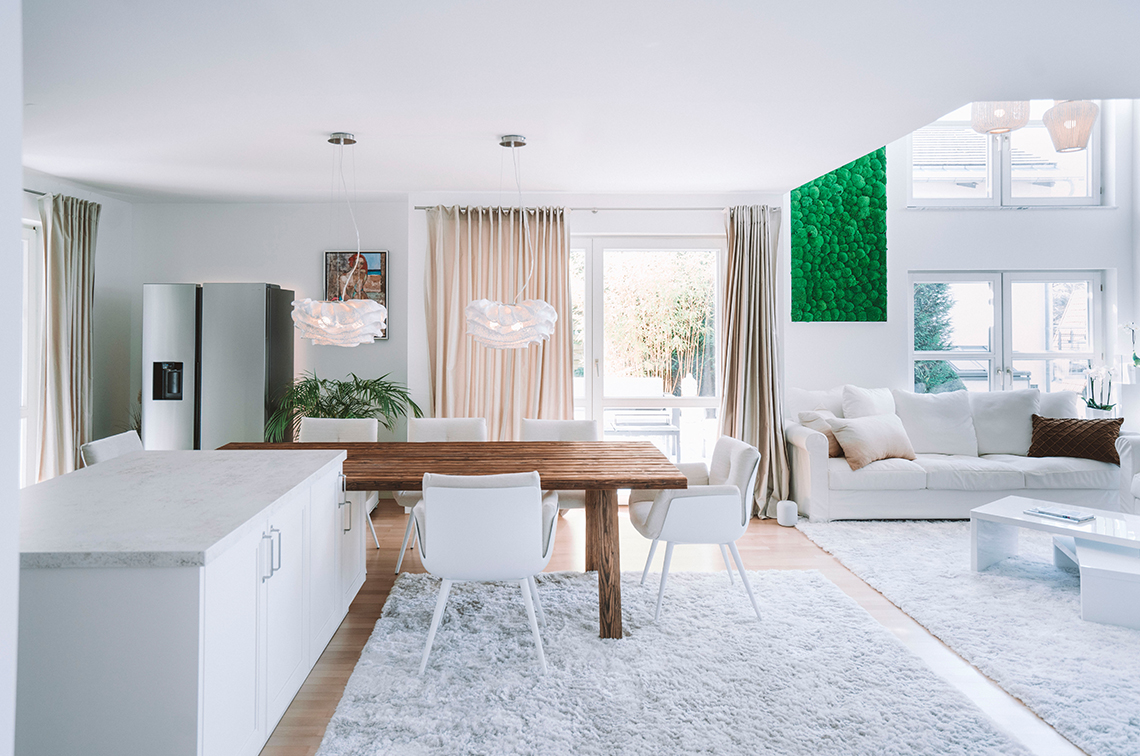 Wenn die Substanz stimmt, kann man so gut wie aus jedem Haus oder jeder Wohnung etwas herausholen. Das Thema in diesem Gebäude sollte Cozy White Interior sein. Gearbeitet haben wir sowohl mit Bestandsmöbeln der Kundin, als auch mit neu geshoppten Produkten. Und viel Umbauarbeiten.
